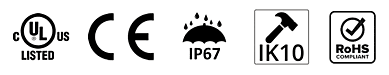 Liny's construction includes an IK10-rated housing, for high resistance to mechanical impacts, and an IP67 ingress protection rating, ensuring it is dust-tight and protected against immersion in water.