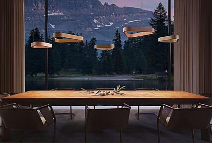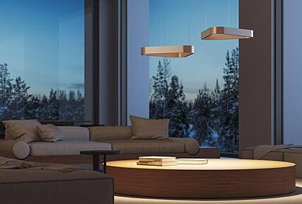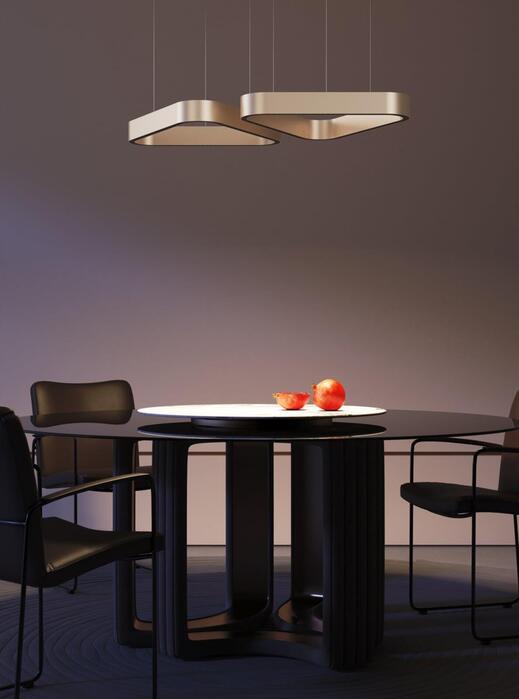 PRAVIA O emits light both upward and downward, creating a dual effect that blends ambient softness with functional clarity. This balanced output elevates spatial rhythm while maintaining visual comfort across architectural planes