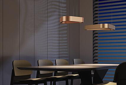 Equipped with a precision-engineered suspension system, PRAVIA O offers smooth, manual height adjustment. Its visual alignment adapts to any ceiling condition while preserving clean vertical tension in every application.