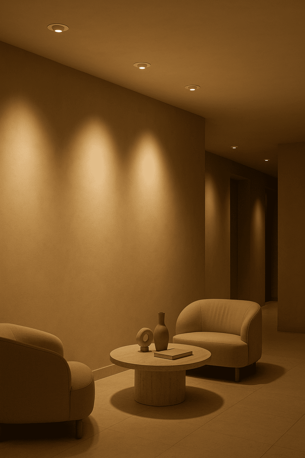 The ultra-thin trim sits flush with the ceiling, blending effortlessly into the architecture for a discreet, refined look.